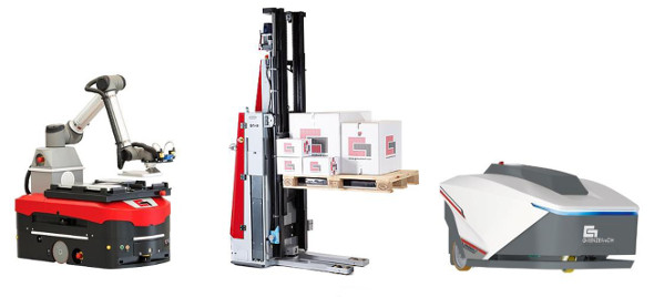 Da sinistra a destra: Mobile Robot MR10S, Forklift, Tugge