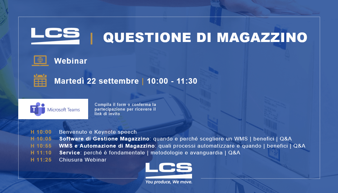 Dopo il successo del primo Webinar, LCS organizza un secondo appuntamento interamente dedicato alla gestione e ottimizzazione dei processi di magazzino.
