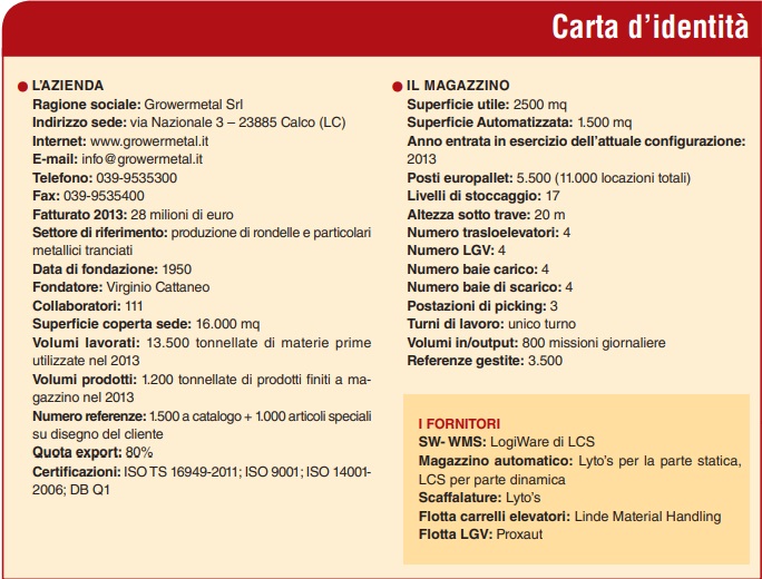 IL MAGAZZINO DEL MESE: ARTICOLO DEDICATO AL MAGAZZINO AUTOMATICO DI GROWERMETAL, REALIZZATO DA LCS E LYTO’S