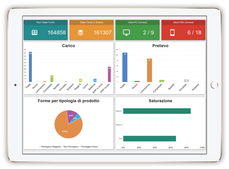 Oltre a ciò che abbiamo visto finora, il WMS ti dà la possibilità di avere sempre sott’occhio la situazione delle scorte e di sapere esattamente la disponibilità dei materiali in termini di numero di colli, di pezzi, ecc.